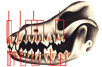 3.切齿形状象锐利的剪刀似的,颚的构造,以及切齿的长短,是判断咬合是否正常的条件。