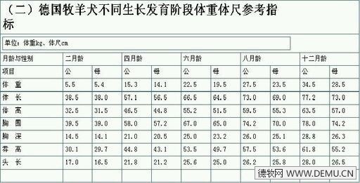这是网上流传的另一版德牧重体参考表